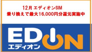 12月度エディオンSIM 乗り換えで最大16000円分還元実施中